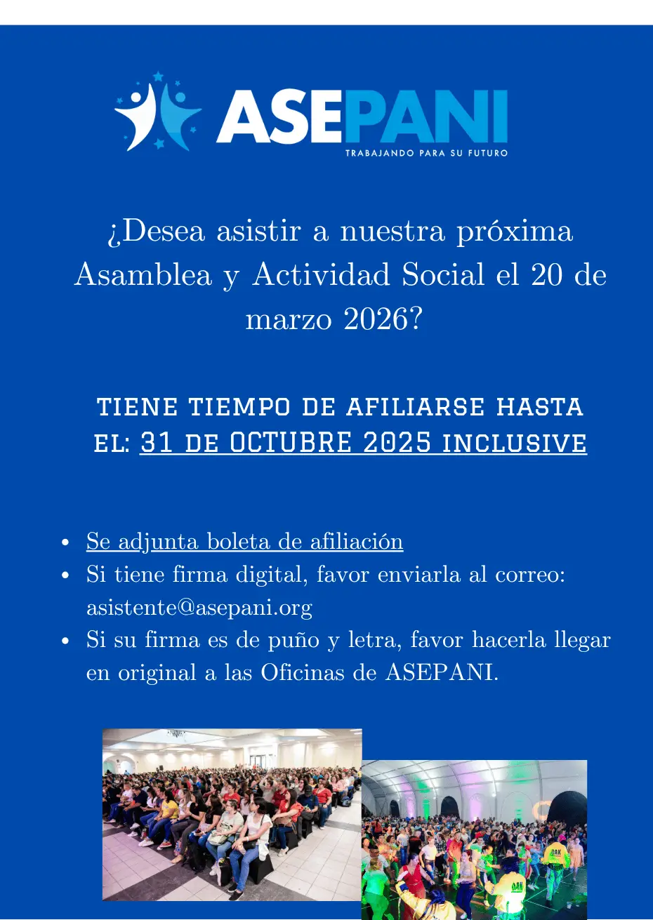 ¿Desea asistir a nuestra próxima Asamblea y Actividad Social el 20 de marzo 2026? Tiene tiempo de afiliarse hasta el: 31 de OCTUBRE 2025 inclusive